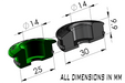 All 30mm injector seats are bright-dipped black anodized. All 25mm injector seats are bright-dipped green anodized. The injector seats are CNC machined with a common 14mm bore for the lower injector O-ring.