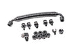 The plumbing kit allows a direct plug and play hookup of the Radium 20-0866 Fuel Rails (not included) to the OEM fuel system. The barbed fittings shown in the picture above and below mimic the OEM fuel rails. With these installed, the OEM rubber hoses that come from the RH and LH high pressure fuel pumps can be reconnected. However, an extra set of 8AN ORB to 6AN male fittings are provided for connect aftermaket fuel lines, if necessary. For maximum flow. a large insulated 8AN crossover hose is provided.