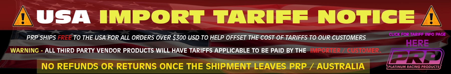 "Trump tariffs are real — but we’ve got you covered with FREE USA shipping for PRP orders over $300!