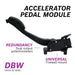 - 16degree (~70mm) travel - Firewall mounted pedal hanging design suitable for Drive by wire (DBW) control - Redundant dual output potentiometers suitable for use with Electronic throttle bodies - Use 6-pin Compact mating connector F 005 X11 508